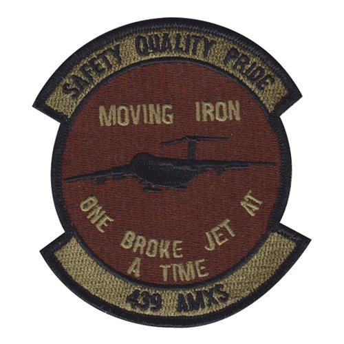 Custom patches for the 439th Aircraft Maintenance Squadron at Westover Air Reserve Base. Our 439 AMXS patches are 100% embroidered with Velcro backing.