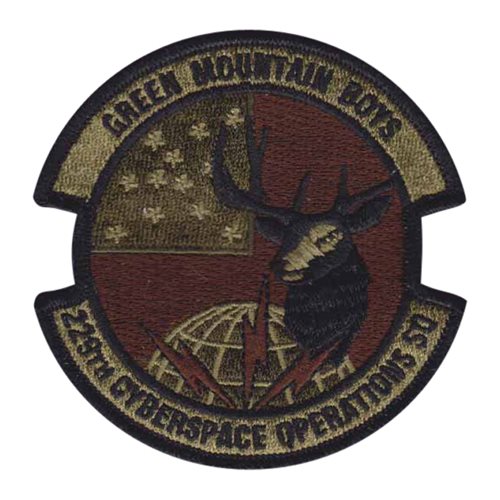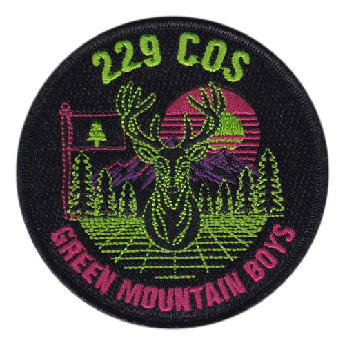 Custom patches for the 229th Cyberspace Operations Squadron of the Vermont Air National Guard. Our 229 COS VT ANG patches are 100% embroidered with Velcro backing.