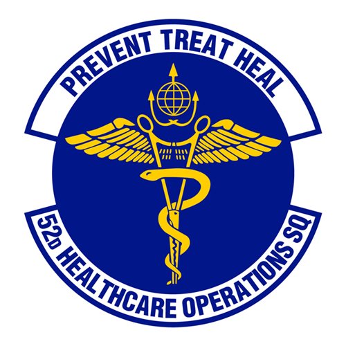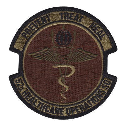 Custom patches for the 52nd Healthcare Operations Squadron at Spangdahlem Air Base, Germany. Our 52 HCOS patches are 100% embroidered with Velcro backing.