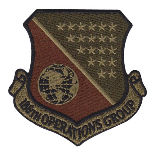 Custom patches for the 186th Operations Group at Air National Guard, Mississippi. Our 186 OG patches are 100% embroidered with Velcro backing.