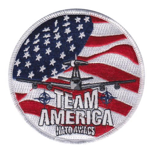 Custom patches for the North Atlantic Treaty Organization AWACS Team America at Ramstein Air Base, Germany. Our NATO AWACS Team America patches are 100% embroidered with Velcro backing.