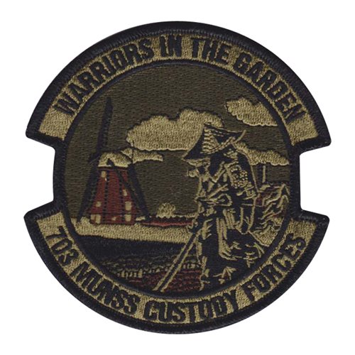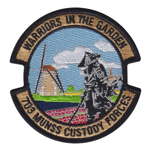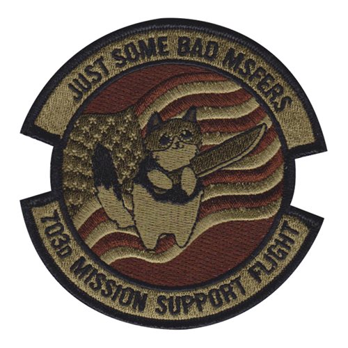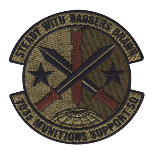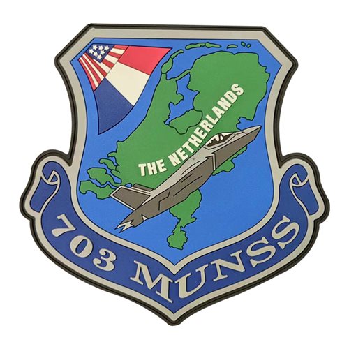 Custom patches for the 703rd Munitions Support Squadron at Spangdahlem Air Base, Germany. Our 703 MUNSS patches are 100% embroidered with Velcro backing.