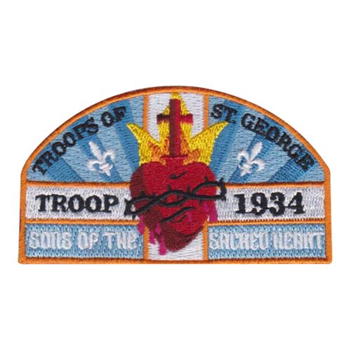 Custom patches for the Troops of St. George. Our Troops of St. George patches are 100% embroidered with Velcro backing.