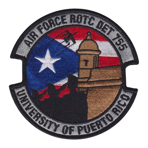 Custom patches for the Air Force Reserve Officers’ Training Corps Det 755 University of Puerto Rico, Rio Piedras. Our AFROTC Det 755 University of Puerto Rico patches are 100% embroidered with Velcro backing.
