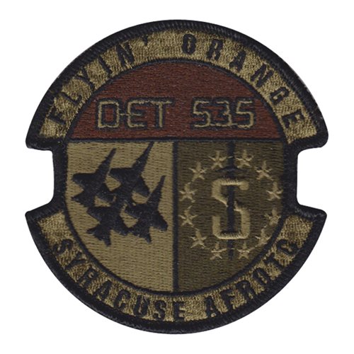 Custom patches for the Air Force Reserve Officer Training Corps Detachment 535 Syracuse University. Our AFROTC Det 535 patches are 100% embroidered with Velcro backing.