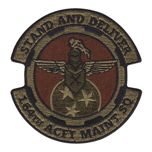 Custom patches for the 164th Aircraft Maintenance Squadron. Our 164 AMXS patches are 100% embroidered with Velcro backing.