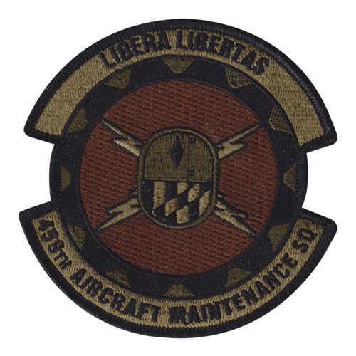 Custom patches for the 459th Aircraft Maintenance Squadron at Andrews Air Force Base, Maryland. Your 459 AMXS patches are 100% embroidered with Velcro backing.