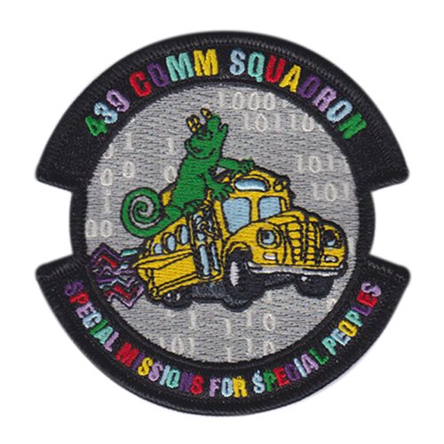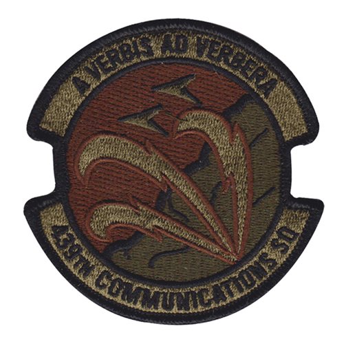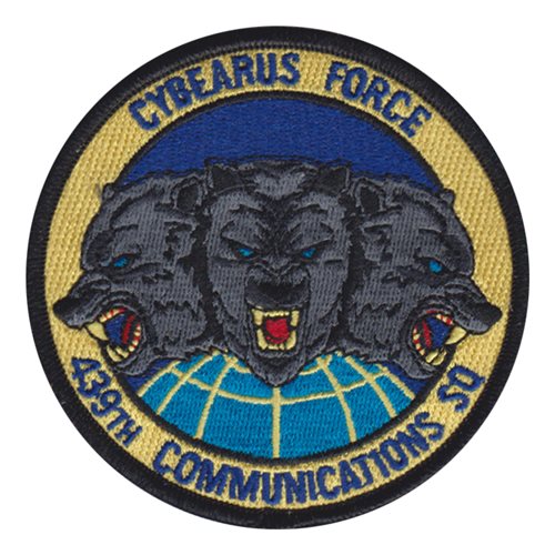 Custom patches for the 439th Communications Squadron at Westover Air Reserve Base, Chicopee Massachusetts. Our 439 CS patches are 100% embroidered with Velcro backing.