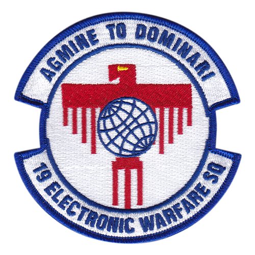 Custom patches for the 19th Electronic Warfare Squadron at Ramstein Air Base, Germany. Our 19 EWS patches are 100% embroidered with Velcro backing.