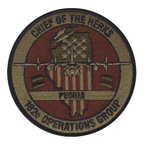Custom patches for the 182nd Operations Group of the Illinois Air National Guard, Illinois. Our 182 OG patches are 100% embroidered with Velcro backing.