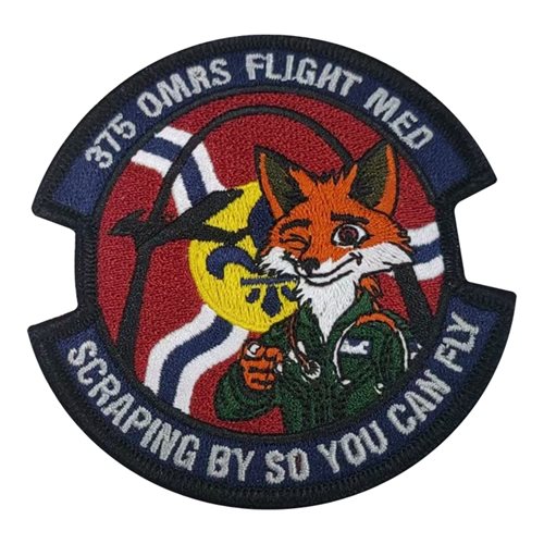 Custom patches for the 375th Operational Medical Readiness Squadron at Scott Air Force Base, Illinois. Our 375 OMRS patches are 100% embroidered with Velcro backing.