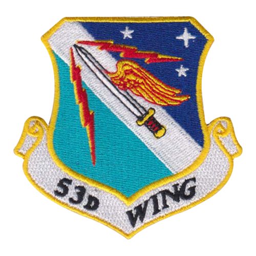 Custom patches for 53rd Wing at Eglin AFB, FL. Our 53 WG patches are 100% embroidered with Velcro backing.