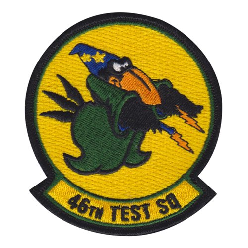 Custom patches for the 46th Test Squadron at Eglin Air Force Base, Florida. Our 46 TS patches are 100% embroidered with Velcro backing.