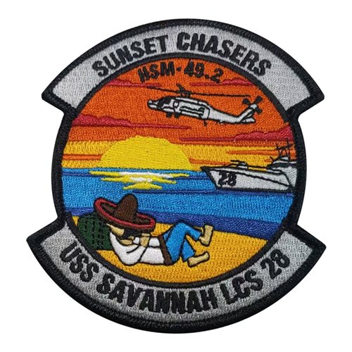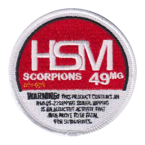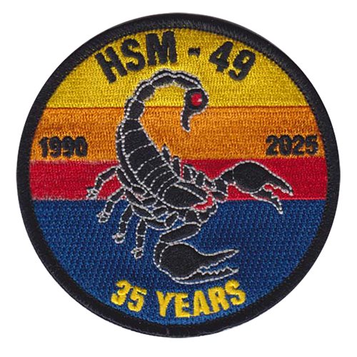 Custom patches for the Helicopter Maritime Strike Squadron 49. Our HSM-49 patches are 100% embroidered with Velcro backing.
