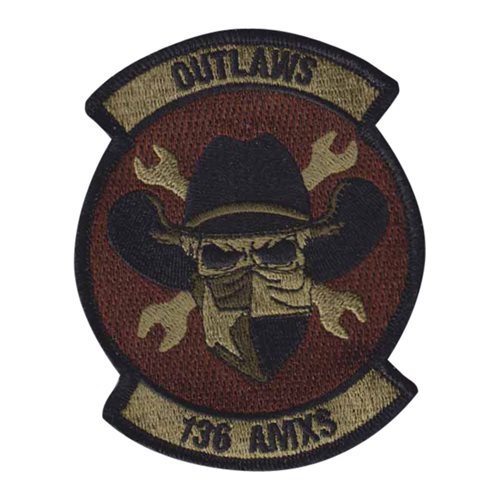 Custom patches for the 136th Aircraft Maintenance Squadron of the Texas Air National Guard. Our 136 AMXS TX ANG patches are 100% embroidered with Velcro backing.