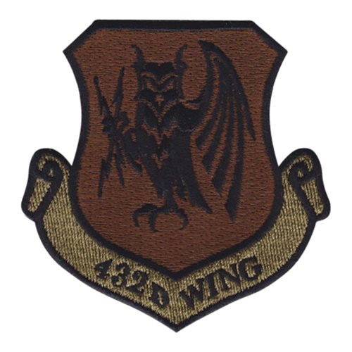 Custom patches for 432nd Wing at Creech Air Force Base, Nevada. Our 432 WG patches are 100% embroidered with Velcro backing.