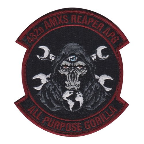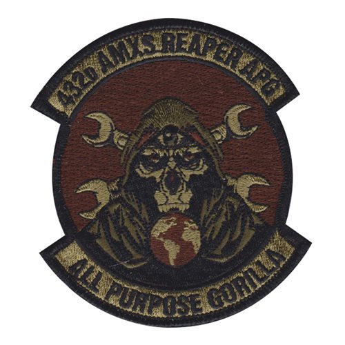 Custom patches for 432d Aircraft Maintenance Squadron at Creech AFB, NV. Our 432 AMXS patches are 100% embroidered with Velcro backing.