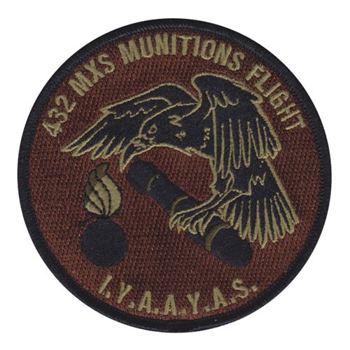 Custom patches for 432nd Maintenance Squadron at Creech Air Force Base, Nevada. Our 432 MXS patches are 100% embroidered with Velcro backing.
