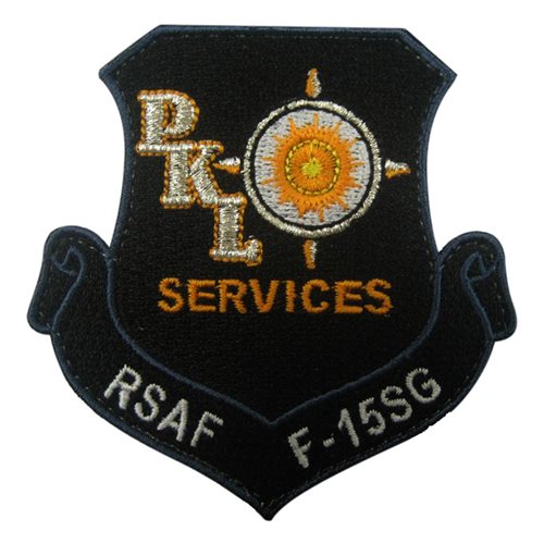 Custom patches for the PKL Services, Inc at. Mt. Home Air Force Base. Our PKL Services patches are 100% embroidered with Velcro backing.