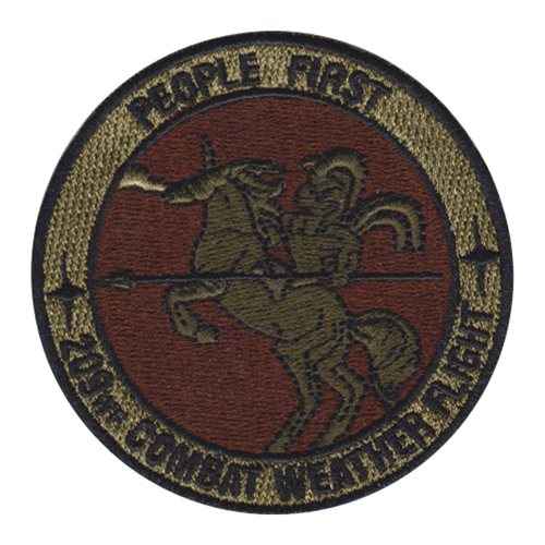 Custom patches for the 209th Weather Flight at Air National Guard, Texas. Your 209 WF patches are 100% embroidered with Velcro backing.