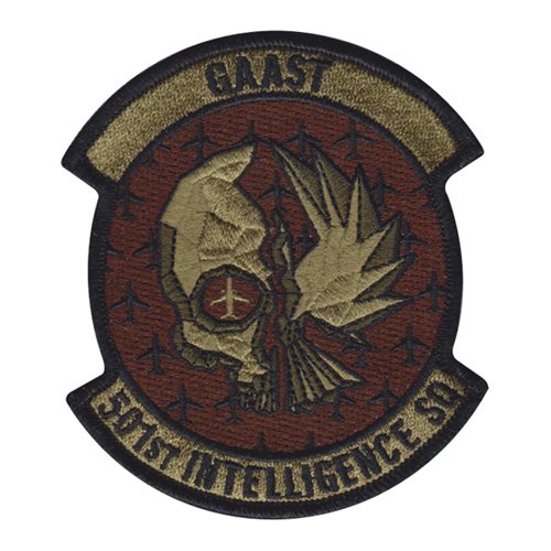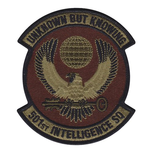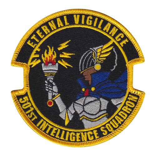 Custom patches for the 501st Intelligence Squadron at Fort Meade, Maryland. Our 501 IS patches are 100% embroidered with Velcro backing.