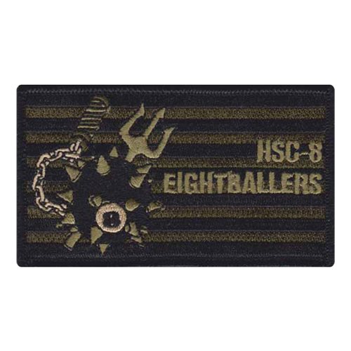 Custom patches for the Helicopter Sea Combat Squadron EIGHT at Naval Air Station North Island. Our HSC-8 patches are 100% embroidered with Velcro backing.