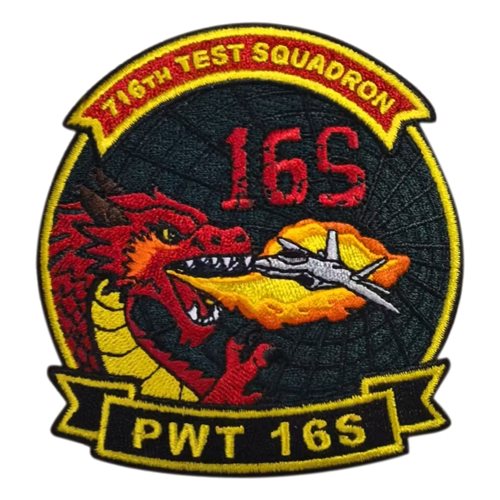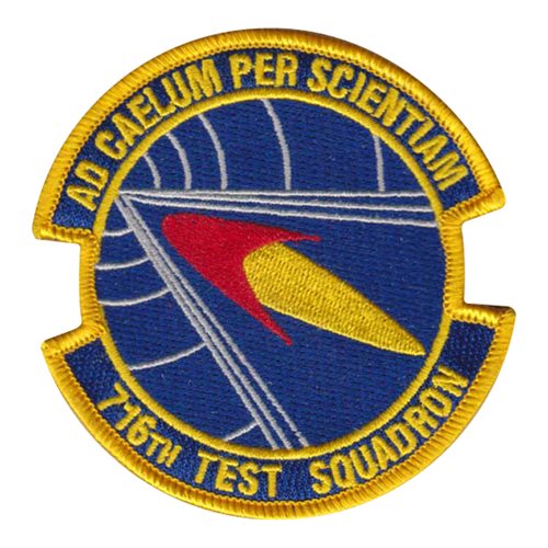 Custom patches for the 716th Test Squadron at the Arnold Air Force Base, Tennessee. Our 716 TS patches are 100% embroidered with Velcro backing.