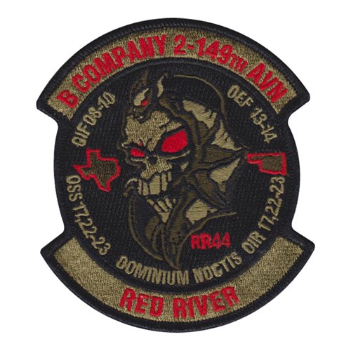 Custom patches for the 2nd Battalion, 149th Aviation Regiment. Our 2-149 AVN patches are 100% embroidered with Velcro backing.