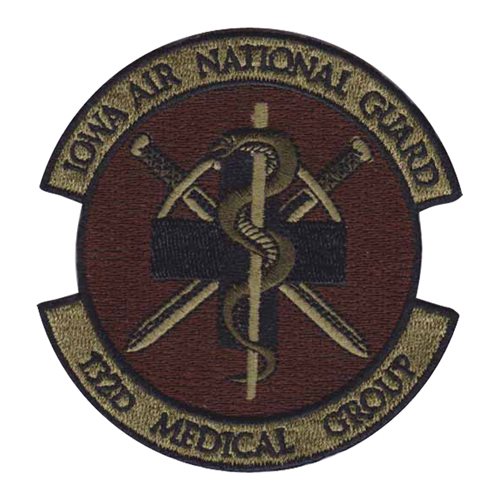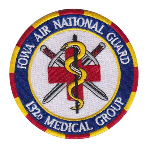 Custom patches for the 132nd Medical Group of the Iowa Air National Guard. Your 132 MDG ANG patches are 100% embroidered with Velcro backing.