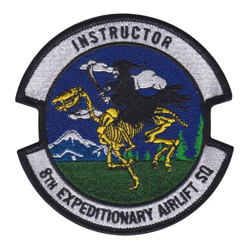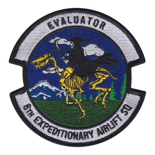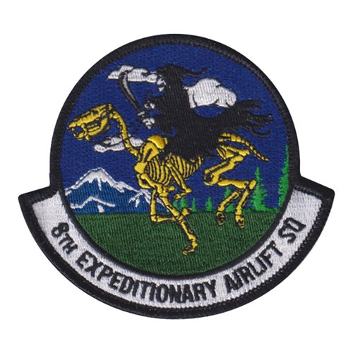 Custom patches for the 8th Expeditionary Airlift Squadron at McChord Air Force Base, Washington. Our 8 EAS patches are 100% embroidered with Velcro backing.