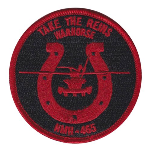 Custom patches for the Marine Heavy Helicopter Squadron 465 at Marine Corps Air Station Miramar, California. Our HMH-465 patches are 100% embroidered with Velcro backing.