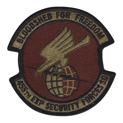 Custom patches for 455th Expeditionary Security Forces Squadron at Bagram Airfield, Afghanistan. Our 455 ESFS patches are 100% embroidered with Velcro backing.