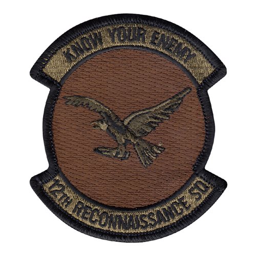 Custom patches for 12th Reconnaissance Squadron at Grand Forks Air Force Base, North Dakota. Our 12 RS patches are 100% embroidered with Velcro backing.