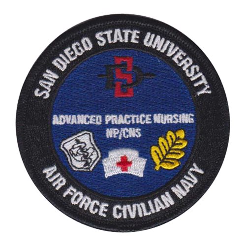 Custom patches for the San Diego State University Detachment 075. Our SDSU Det 075 patches are 100% embroidered with Velcro backing.