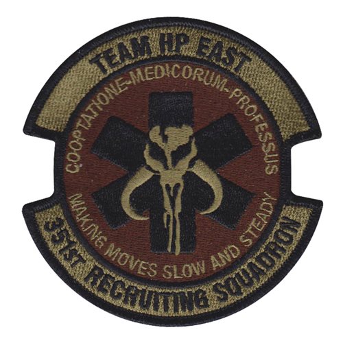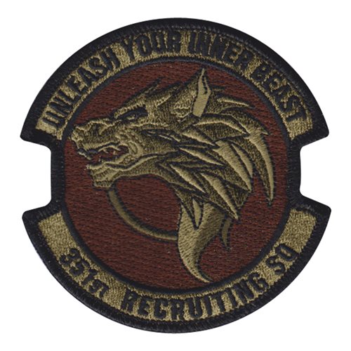 Custom patches for the 351st Recruiting Squadron at Dobbins Air Reserve Base, Georgia. Our 351 RCS patches are 100% embroidered with Velcro backing.