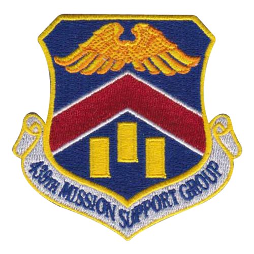 Custom patches for the 439th Mission Support Group at Westover Air Reserve Base. Our 439 MSG patches are 100% embroidered with Velcro backing