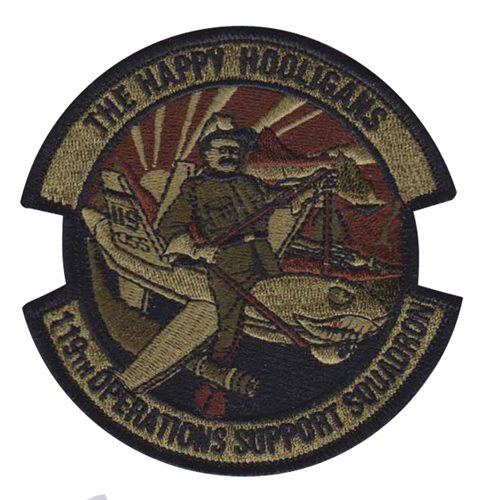 Custom patches for the 119th Operations Support Squadron of the North Dakota Air National Guard Base. Our 119 OSS patches are 100% embroidered with Velcro backing.