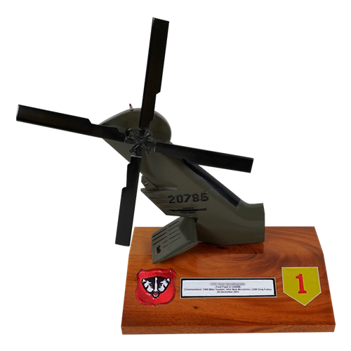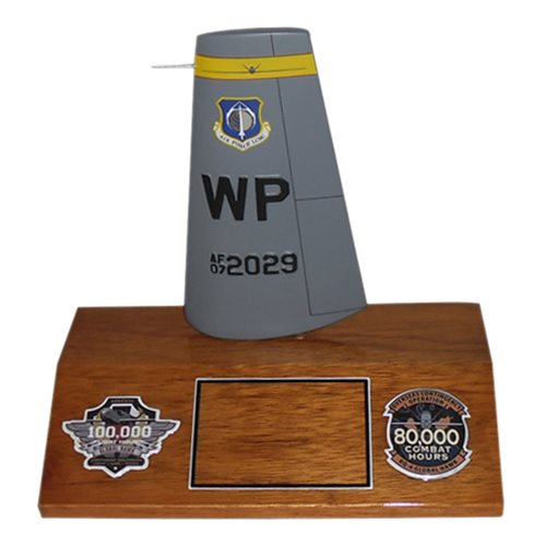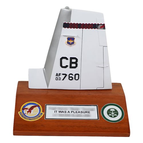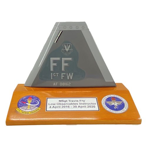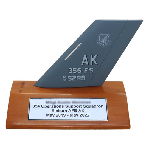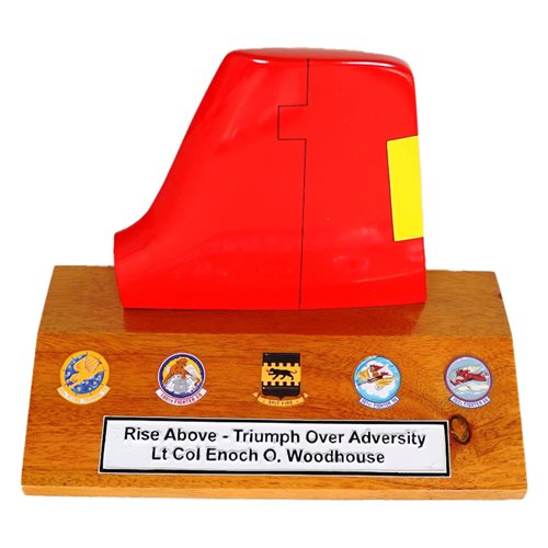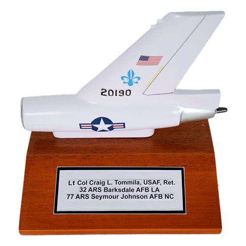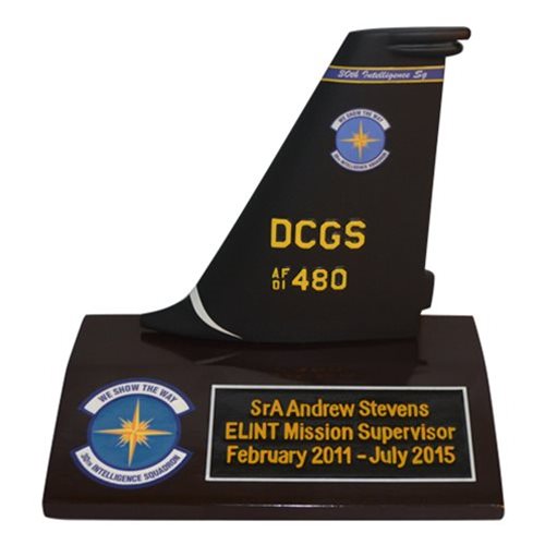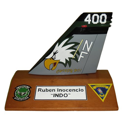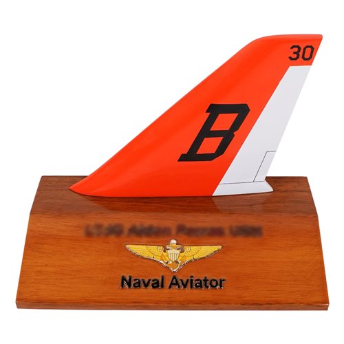 Your custom 6" tall, one-sided aircraft tail flash on a wooden base with any squadron markings and your choice of tail number.
