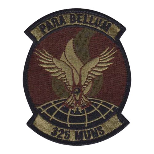Custom patches for the 325th Munitions Squadron at Tyndall Air Force Base, Florida. Our 325 MUNS patches are 100% embroidered with Velcro backing.