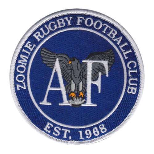 Custom patches for the United States Air Force Academy Men's Rugby. Our USAFA Men's Rugby patches are 100% embroidered with Velcro backing.