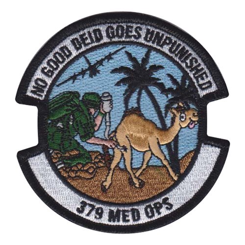 Custom patches for the 379th Expeditionary Operational Medical Readiness Squadron at Al Udeid Air Base, Qatar. Our 379 EOMRS patches are 100% embroidered with Velcro backing.