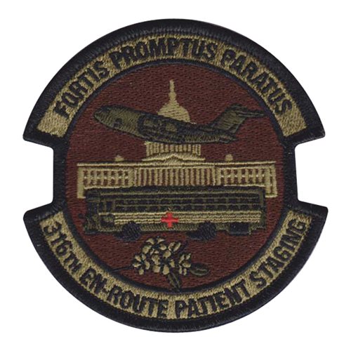 Custom patches for the 316th En-Route Patient Staging. Our 316 ERPS patches are 100% embroidered with Velcro backing.