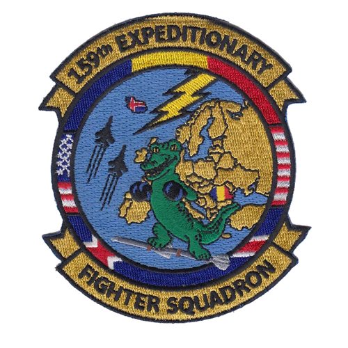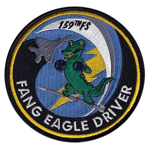 Custom patches for the 159th Fighter Squadron at Jacksonville Air National Guard Base, Florida. Our 159 FS patches are 100% embroidered with Velcro backing.