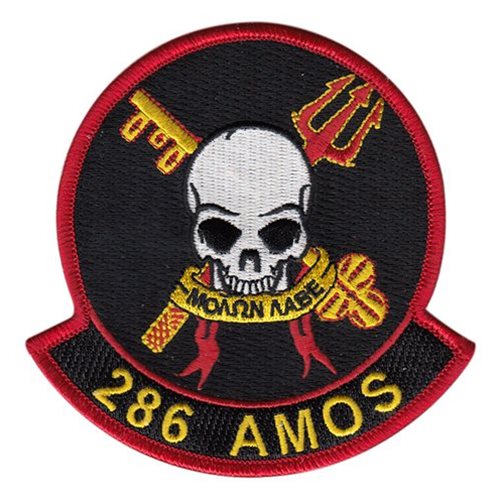 Custom patches for the 286 Air Mobility Operations Squadron at Meridian, Lauderdale County, Mississippi. Our 286 AMOS patches are 100% embroidered with Velcro backing.