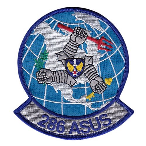 Custom patches for the 286 Air Support Squadron at Air National Guard, Mississippi. Our 286 ASUS patches are 100% embroidered with Velcro backing.