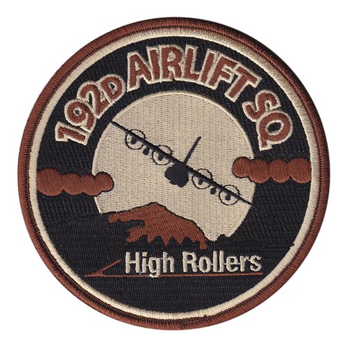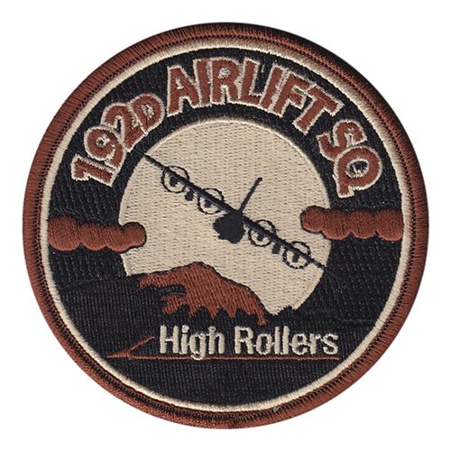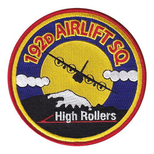 Custom patches for the 192nd Airlift Squadron at Reno Air National Guard Base, Nevada. Our 192 AS patches are 100% embroidered with Velcro backing.