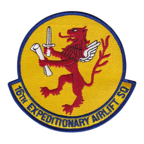 Custom patches for the 16th Expeditionary Airlift Squadron at Joint Base Charleston, South Carolina. Our 16 EAS patches are 100% embroidered with Velcro backing.