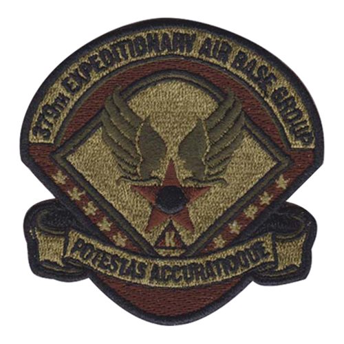Custom patches for the 379th Expeditionary Air Base Group. Our 379 EABG patches are 100% embroidered with Velcro backing.