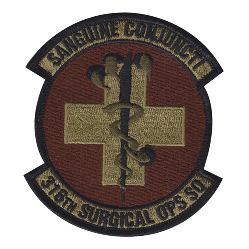 Custom patches for the 316th Surgical Operations Squadron. Our 316 SGCS patches are 100% embroidered with Velcro backing.