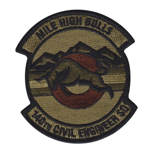 Custom patches for the 140th Civil Engineer Squadron at Buckley Space Force Base at Aurora, Colorado. Our 140 CES patches are 100% embroidered with Velcro backing.